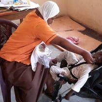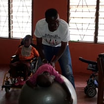 Wir hatten auf diesem Grund eine Reise nach Nkoranza in die Hand in Hand Community (eine etablierte Einrichtung für Menschen mit intellektueller Beeinträchtigung) unternommen. Diese galt als Fortbildung für die Mitarbeiter, um Eindrücke zu sammeln. Eines unserer Kinder mit Infantiler Zerebralparese war gemeinsam mit seiner Mutter dabei, um sich dort nach Unterstützungsmöglichkeiten für ihn zu erkundigen. Wir haben dort an den täglich stattfindenden physiotherapeutischen Übungen mit dem Kind teilgenommen und viele Erfahrung von den Kollegen gesammelt. Ich habe wieder festgestellt, dass wir professionelle Hilfe im Bereich der Ergo- und Physiotherapie in unsere Einrichtung sehr gut gebrauchen könnten.