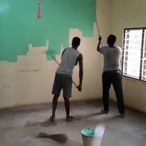 Die Schulen in Ghana bzw. die Einrichtung hatten ca. 4 Wochen Ferien. Diese Zeit habe ich genutzt, um die Räume der Tagesstätte zu renovieren. Zusammen mit 6 Jungs aus der Umgebung habe ich gestrichen, den Hof aufgeräumt und kleine Reparaturen durchgeführt. Die Renovierung-stätigkeiten wurden ehrenamtlich durchgeführt, dass finde ich nach wie vor bemerkenswert, da Ehrenamt in Ghana nicht üblich ist.